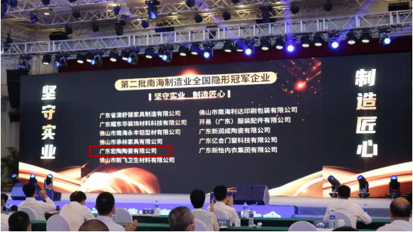 广东宏陶陶瓷有限公司名列“南海制造业全国隐形冠军企业”光荣榜