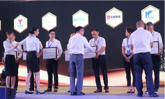 会议对第二批共40家南海制造业全国隐形冠军企业进行了授牌,这些企业均为制造业细分领域的头部企业,是一批引领技术前沿、在细分市场“专精特新”的企业群体,其市场占有率、产量或产品销量等核心数据指标,至少有一项居全国前三,其中不少居全国第一。宏宇集团下属广东宏陶陶瓷有限公司名列40家冠军企业之一,被授予“南海制造业全国隐形冠军”光荣牌匾!宏宇集团生产总经理助理刘积胜代表企业上台领牌。