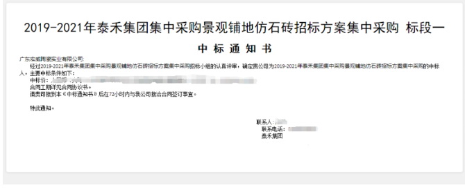 △ 绿地集团材料公司中标通知书