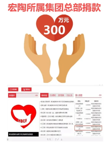 生命重于泰山,进入防控非常状态下的中国,正在与时间赛跑,举国之力共抗肺炎疫情。宏陶陶瓷勇担中华民族企业的社会责任,在疫情发生的第一时间就加入驰援疫情防控队伍中,2020年1月29日,集团资助湖北慈善300万元现金,为抗疫逆行者保驾护航,为打赢这场人民守卫战加油助力。