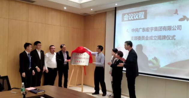 随后,佛山市禅城区张槎街道组织工作办公室领导和宏宇集团在册党员一起为中共广东宏宇集团有限公司支部委员会揭牌。