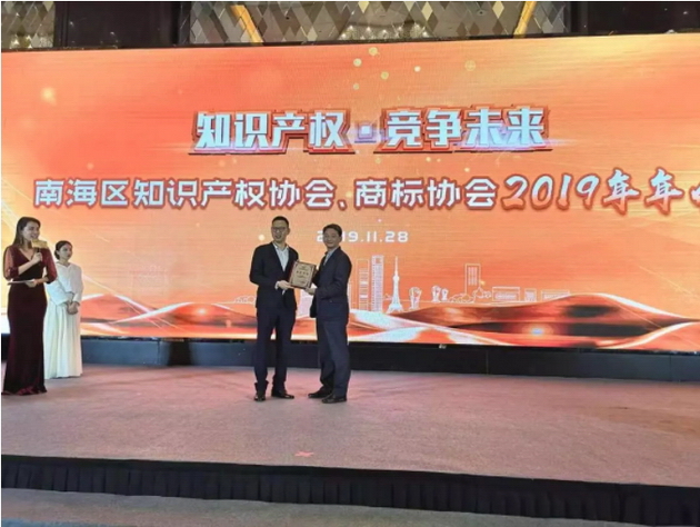 南海区市场监督管理局知识产权科陈秋长科长(右)向叶总颁牌