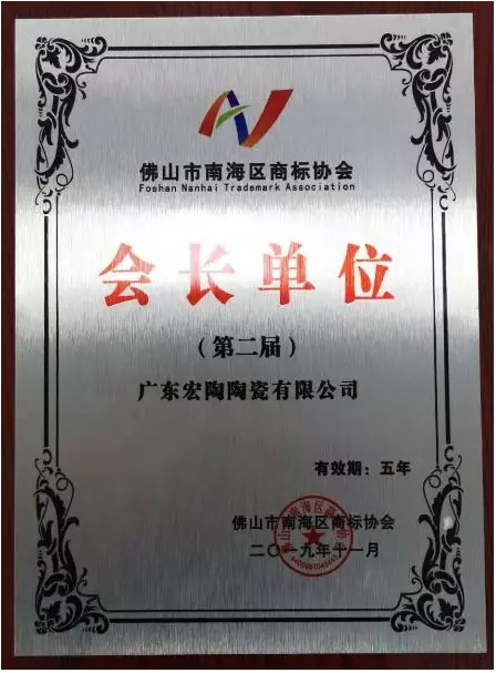 宏陶新任佛山市南海区商标协会会长单位牌匾