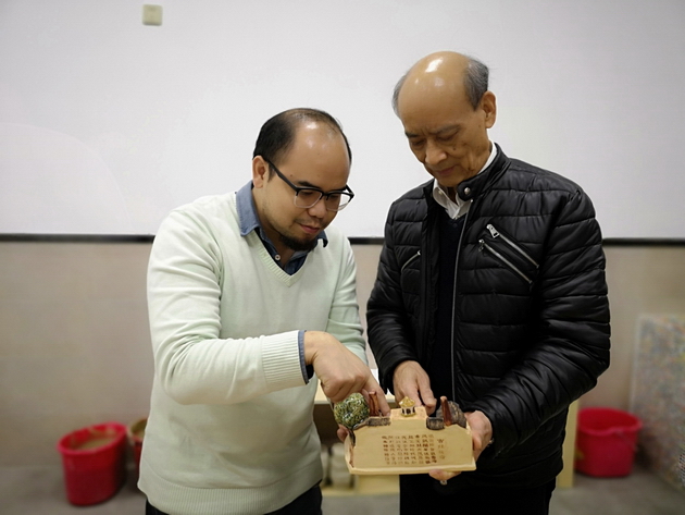 南风古灶陶艺大师何宇豪与宏宇集团顾问欧家瑞探讨“古灶神韵”陶塑创作构思