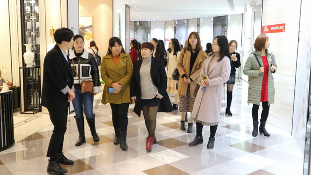 宏宇集团生产一线女职工代表在宏宇品牌展厅合影留念