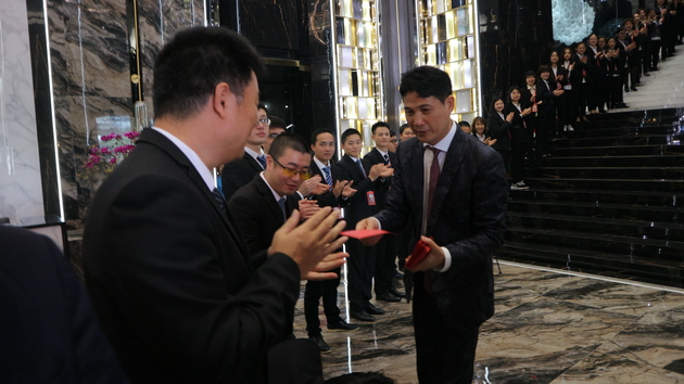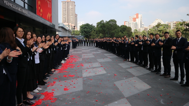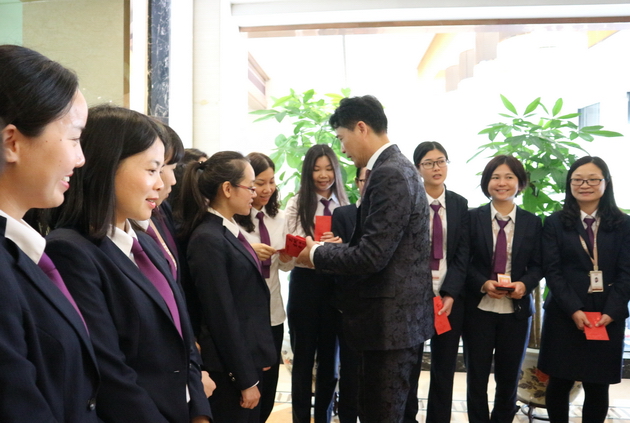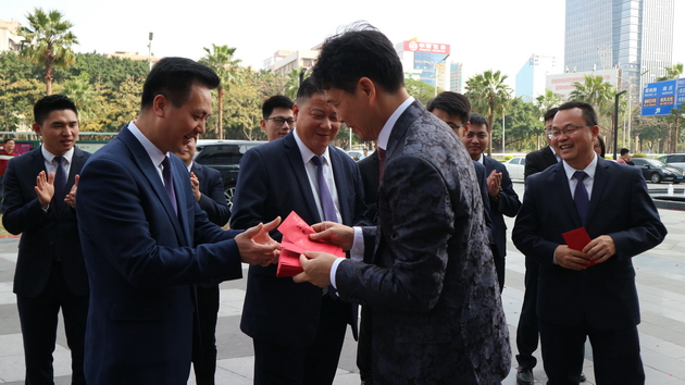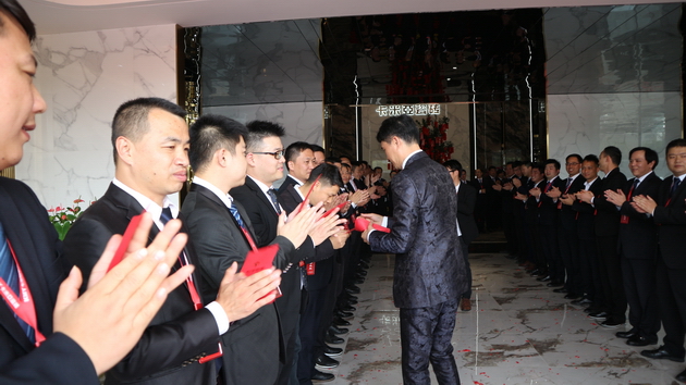 宏宇集团董事长梁桐灿携公司高层领导走访宏宇陶瓷、威尔斯陶瓷、宏陶陶瓷、卡米亚陶瓷、意特陶陶瓷以及石湾古镇文创园,亲自为每一位员工派发新年红包,共贺新禧。
