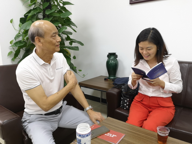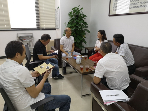 高安市政府领导一行首先来到位于石湾古镇文创园宏陶陶瓷总部三楼的欧总办公室。欧总为到访嘉宾详细介绍了宏宇集团的发展情况,并着重介绍了宏宇集团的“12345”企业文化。