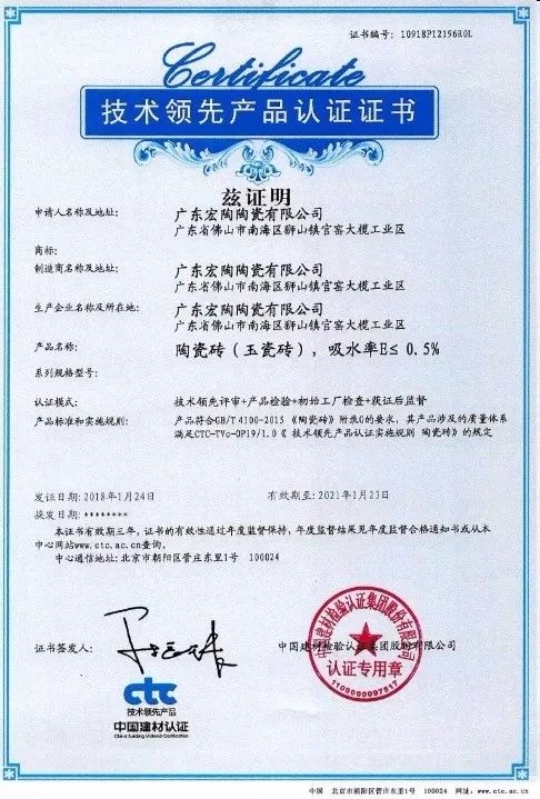 2017年12月5日,宏宇“玉瓷砖”经国家住建部组织评估达“国际领先水平”