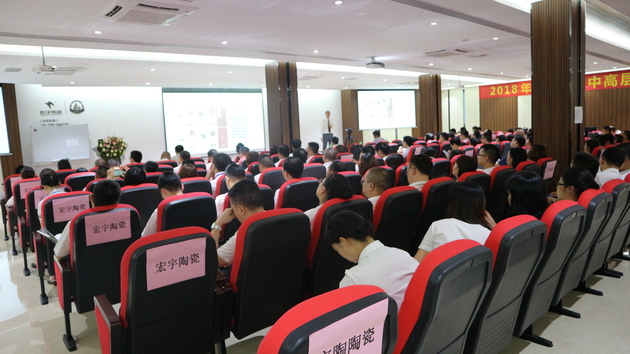 6月27日,宏宇集团中高层干部企业文化培训会在宏宇陶瓷总部三楼会议室顺利召开。宏宇集团副总经理欧家瑞亲自授课。来自宏宇集团总经办、财务部、行政部、人力资源部、市场部,以及宏宇、宏陶、威尔斯、卡米亚、意特陶五品牌销售公司的中高层干部近200人参加了培训会。