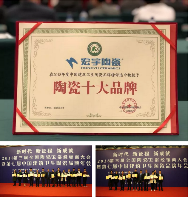 宏宇陶瓷荣获“陶瓷十大品牌”等六项大奖