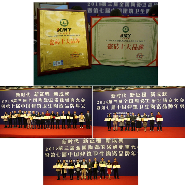 卡米亚陶瓷荣获“瓷砖十大品牌”等六项大奖