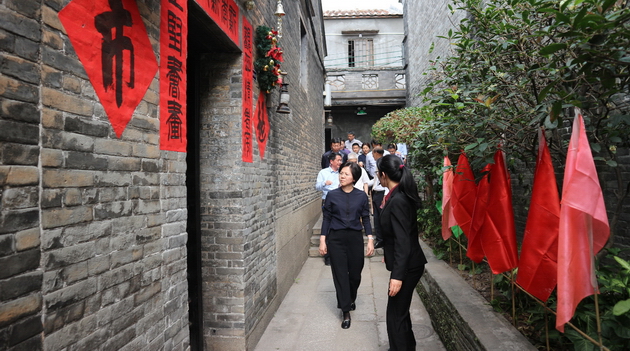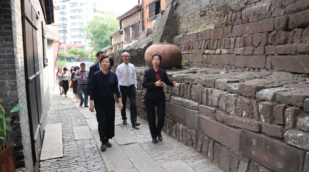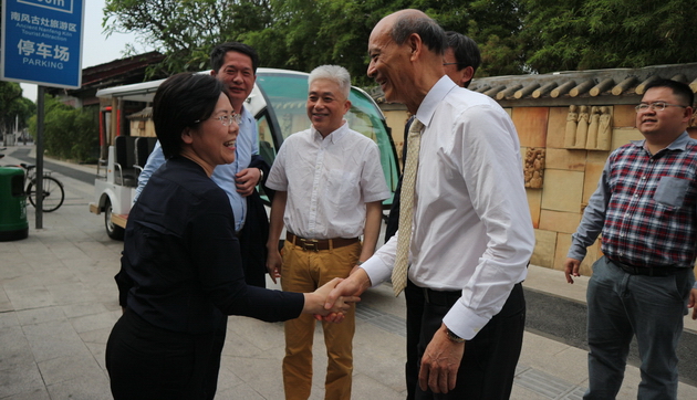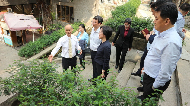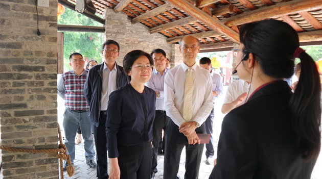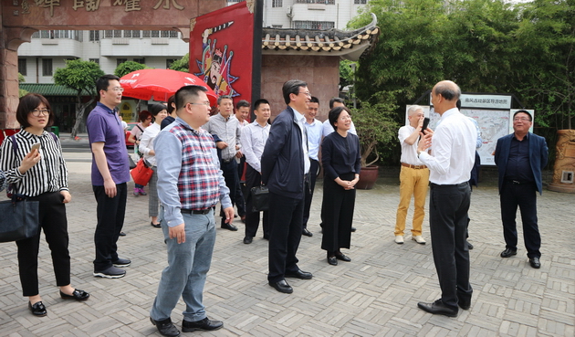 在导游的带领下,梅亦市长一行在南风古灶景区参观考察