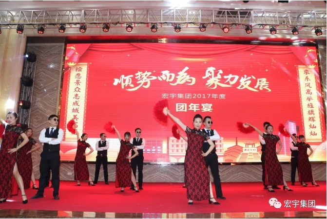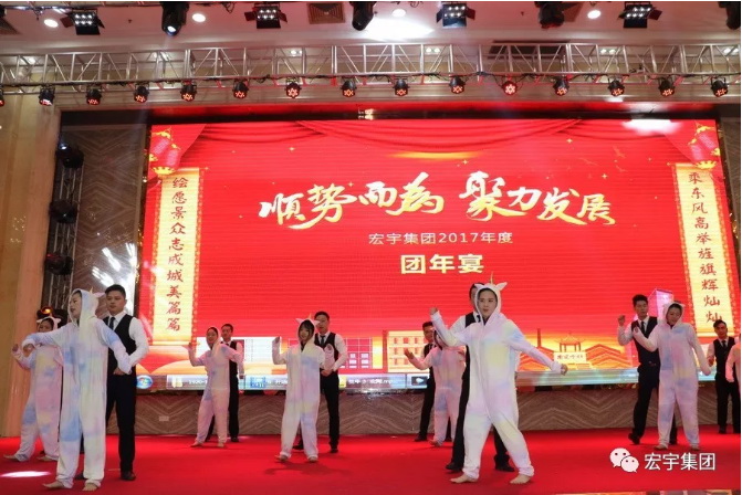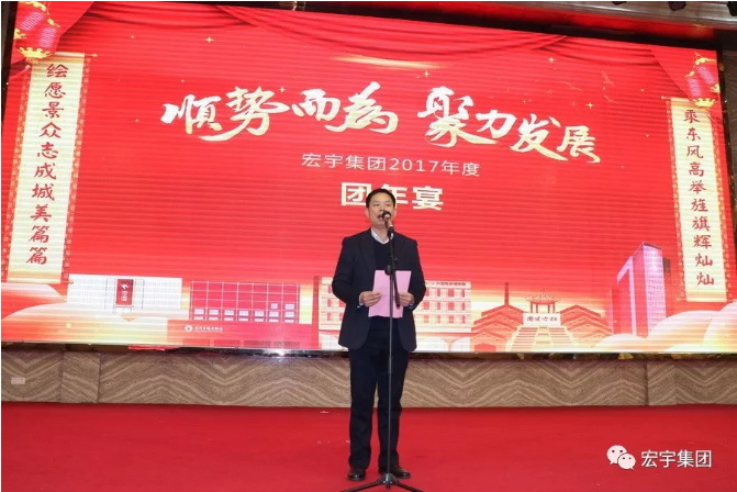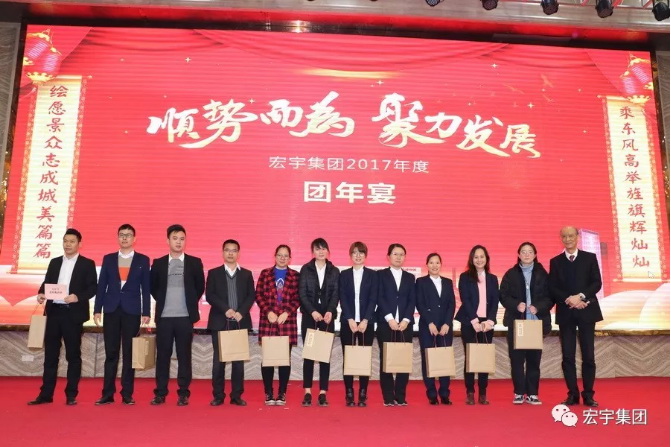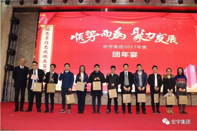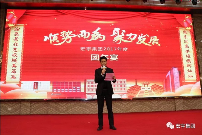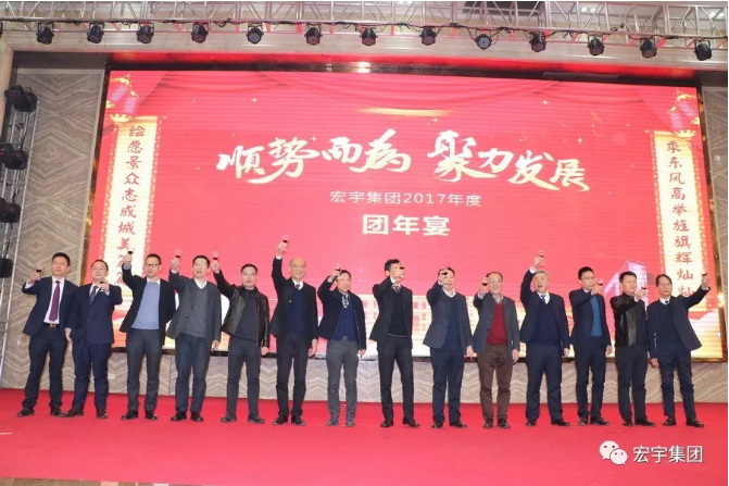 2月7日晚,顺势而为 聚力发展——宏宇集团2017年度团年宴在佛山叙福楼酒店隆重举行。宏宇集团董事长梁桐灿、生产总经理谭铝光、副总经理欧家瑞等一众高层领导与1000多名宏宇员工欢聚一堂,共同分享宏宇2017年的发展成果、畅想2018年宏宇更加辉煌灿烂的发展蓝图。