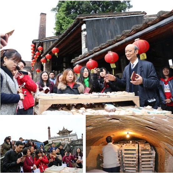 欧总带领媒体朋友们游览南风古灶,恰逢宏陶陶瓷“创新瓷砖重现古镇辉煌”陶版画入龙窑烧