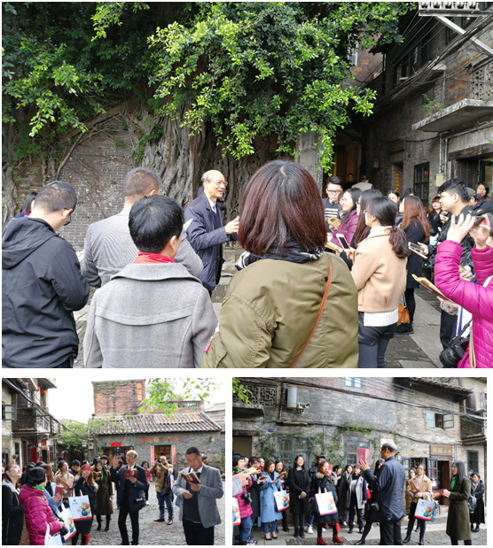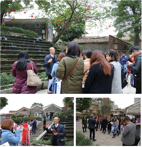 活动刚开始,欧总首先带领媒体朋友们一起游览了石湾源远流长陶瓷文化的历史见证——南风古灶。在500多年窑火不断的南风古灶龙窑前遥想石湾陶瓷辉煌的历史、在明清古建筑群穿梭怀古、在古榕树下抚今追昔......欧总一边将南风古灶各景点的历史渊源娓娓道来,一边为媒体朋友们诵读他亲自为各景点写的诗词,阐述他借诗词所抒发的情怀。媒体记者们循着欧总的介绍,一边看景,一边品诗,眼睛和思想同时感受着石湾陶瓷的厚重历史和文化魅力,美不胜收、意犹未尽。