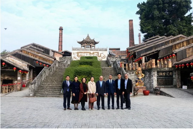 神州长城国际工程有限公司董事长助理庄雄明,中国粤西(国际)建设发展联盟执行秘书长梁泽平,众陶联供应链服务有限公司战略中心总监冼研钧、一带一路中心经理潘欣欣陪同参观,南风古灶总经理张滢全程接待,并向来宾介绍南风古灶悠久的制陶历史。
