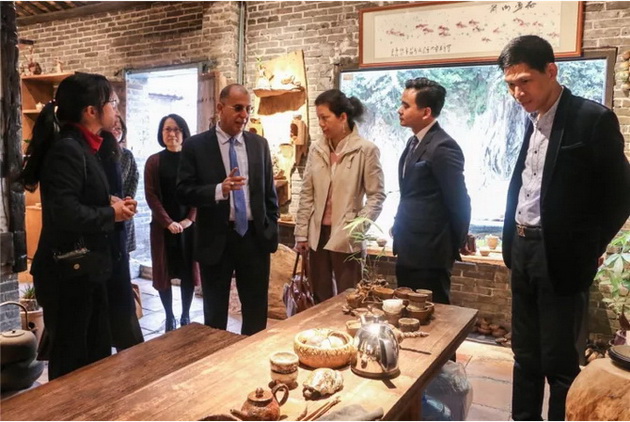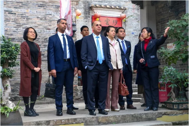 Hilal Alhasani对古民居里的中国风茶桌茶具产生了浓厚的兴趣,并询问导游是如何制作的。精美的龙窑柴烧作品,岭南风格的古建筑在Hilal Alhasani一行来宾的眼中都是中国传统文化的表达。