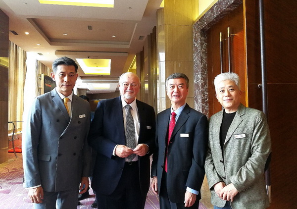 中国代表(中国建筑卫生陶瓷协会常务副会长缪斌、副秘书长宫卫、宏宇集团市场总监王勇)与美国ISO标准协会顾问霍夫曼合影