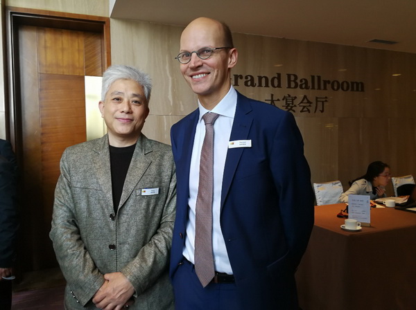 宏宇集团市场总监王勇与欧盟陶瓷协会秘书长Renaud Batier合影