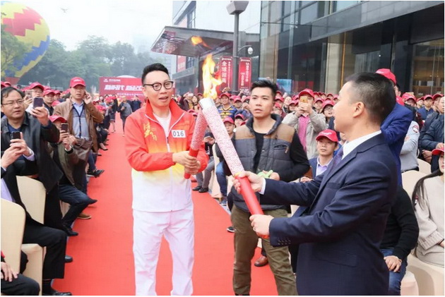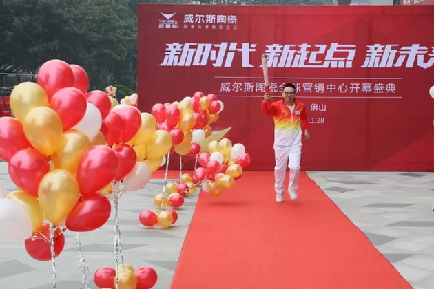 威尔斯陶瓷品牌总经理李总接递最后第十八棒火炬