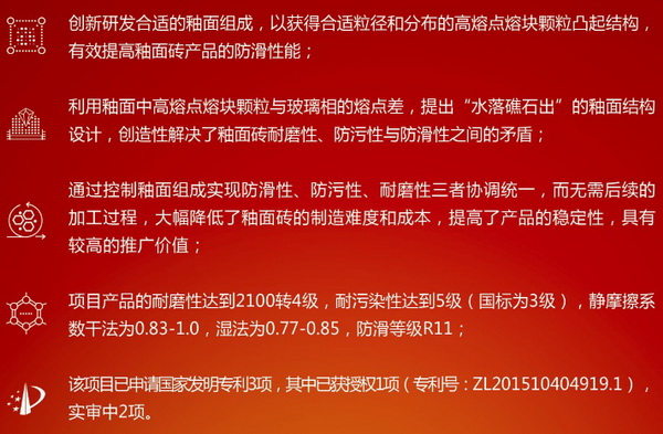 宏宇“耐磨防滑陶瓷地面砖”产品创新点: