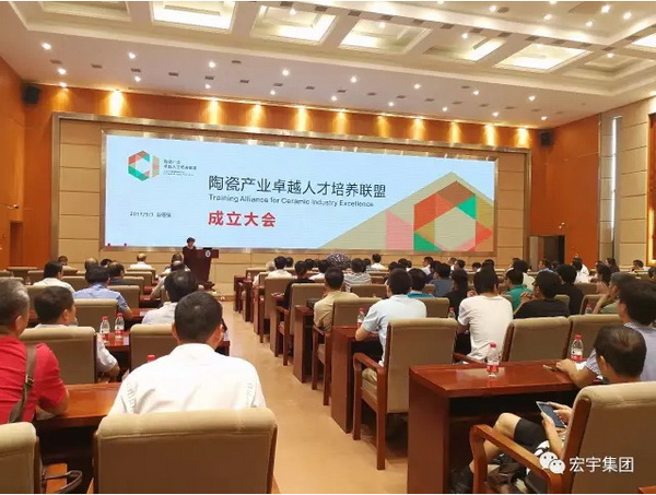 9月3日,“陶瓷产业卓越人才培养联盟”成立大会在景德镇陶瓷大学隆重召开。中国陶瓷工业协会理事长杜同和、常务副理事长傅维杰、景德镇陶瓷大学党委书记江伟辉、校长宁钢等领导,以及包括宏宇集团、东鹏、新明珠、诺贝尔、鹰牌等几大行业巨头在内的25家陶瓷企业代表参加会议。宏宇集团副总经理欧家瑞、市场总监王勇出席会议。
