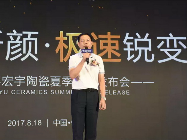 发布会在一首热情澎湃的《宏宇荣耀》中拉开序幕,宏宇陶瓷生产总经理谭铝光为发布会致辞;品牌总经理张永春发表重要讲话,解读了下半年品牌战略发展规划。自品牌转型升级以来,宏宇陶瓷在各方面都取得了初步成效。为实现品牌“百日脱胎换骨”的目标,张总表示下半年宏宇将从形象升级、产品重组、价值重塑、渠道变革、促销转型、服务优化各项进行突破,全面深化改革,促成品牌极速锐变。