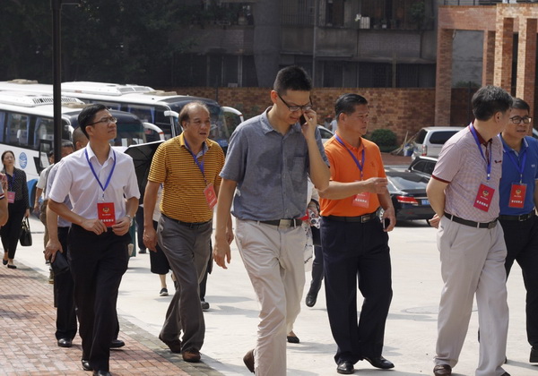 市政协委员们到达园区,石湾古镇文创园副总经理何江海(左一)陪同参观