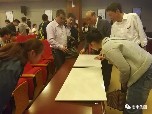 《瓷砖与文化融合的创新》讲座,是宏宇集团副总经理欧家瑞(欧教授)结合宏宇将“光雕幻影”创新技术与中华传统文化相融合创新研发“水印图案瓷砖—隐形中华文化系列瓷砖”产品的实际案例,总结宏宇在“瓷砖+文化”创新方面的心得体会,精心为陶大学子们准备的一堂讲座。讲座内容有陶瓷高新技术的介绍、有中华传统文化的讲解、有格律诗词的深入解读......现场听讲座的同学们一时为中国陶瓷科技领先世界而骄傲,一时为中华传统文化的博大精深而自豪,一时又为中国古典诗词之美而感动,讲座现场鸦雀无声,同学们都听得入神,偶尔爆发出的热烈掌声都是同学们发自内心欢喜的真诚表达。