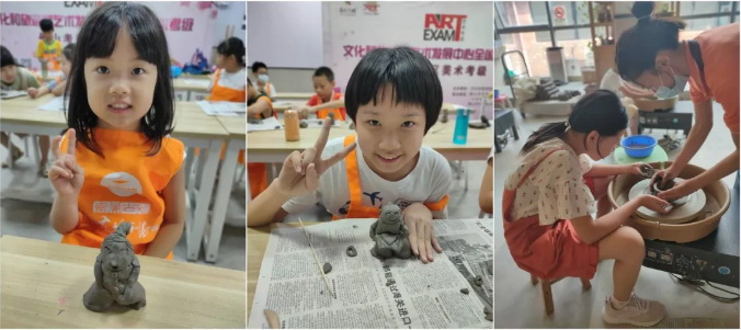 小朋友们在专业的陶艺师傅指导下,体验制作陶瓷立体作品,有梦想砖、陶塑泥偶、笔筒、储钱罐......