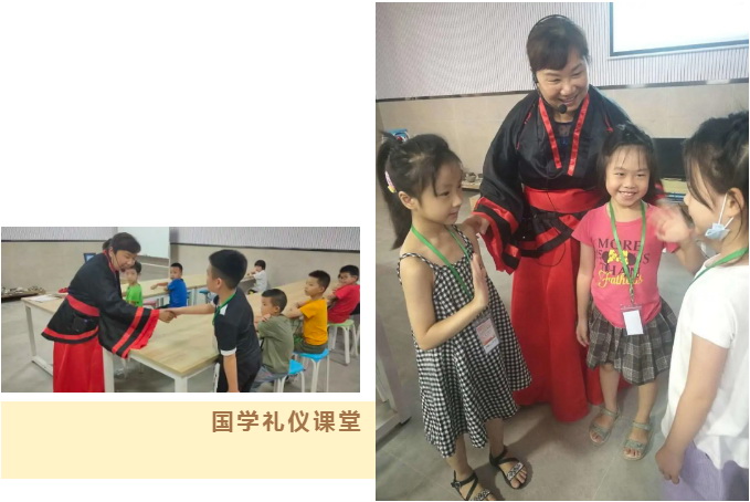 在国学礼仪课堂上,孩子们汲取中国传统文化知识,体会古圣贤在待人接物上的礼、节、度,传承国学精髓。