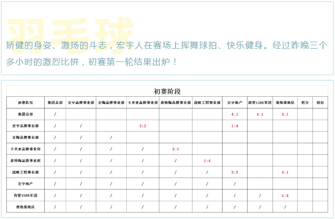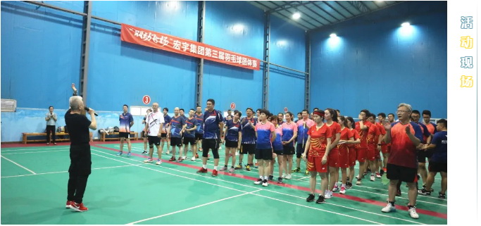 7月27日,“羽动飞扬”宏宇集团第三届羽毛球团体赛在意特陶羽毛球馆正式开赛!宏宇集团总部、宏宇地产、文创园、南海生产基地以及各品牌事业部等9支队伍参加比赛。宏宇集团顾问欧家瑞、宏宇集团市场总监王勇、宏宇集团人力资源总监黄瀚君等领导参加开赛仪式。