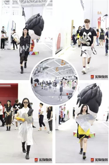 值得注意的是,首映现场特设展示环节,在超30米长、200多平方米、呈十字形环绕的炫酷T台上,宏陶精选12款高端新品由水刀加工成乐器和其他多样形状,以模特生动走秀形式别出心裁集中亮相。来宾们的视线纷纷被宏陶新品所吸引,落步展品前,争先一睹风华。