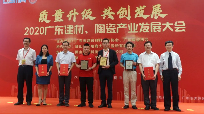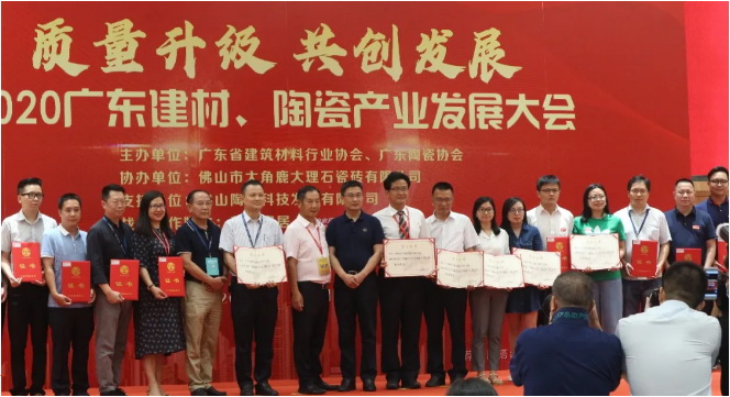 随后,大会对2019年度广东省建筑材料科学技术奖、2019年度“南坡杯”广东省建材行业技术革新奖、2019年度先进集体、个人等相关单位及个人进行了表彰。宏宇集团一举斩获“2019年度广东建材科技进步示范企业、2019年度广东建材绿色制造示范企业、2019年度广东陶瓷标准化示范企业、2019年度广东陶瓷设计创新示范企业、2019年度广东省建材行业技术革新奖一等奖”五项大奖,满载而归。