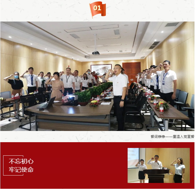 大会在威武雄壮的《国际歌》中拉开帷幕,活动一开始,黄瀚君同志带领大家重温入党誓词。铿锵恢宏的誓词,强烈震撼着在场的每一位党员,一字一句,神圣而豪迈,表达着党员同志们对中国共产党的无限忠诚,时刻不忘共产党人的初心和使命。