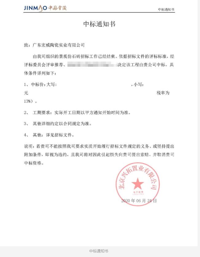 暨与恒大、绿地、招商、红星地产等多家知名房企达成战略合作之后,宏宇集团再次从众多陶企中脱颖而出,中标中国金茂户外花岗岩景观砖集采项目,缔结战略合作伙伴关系。