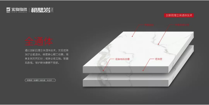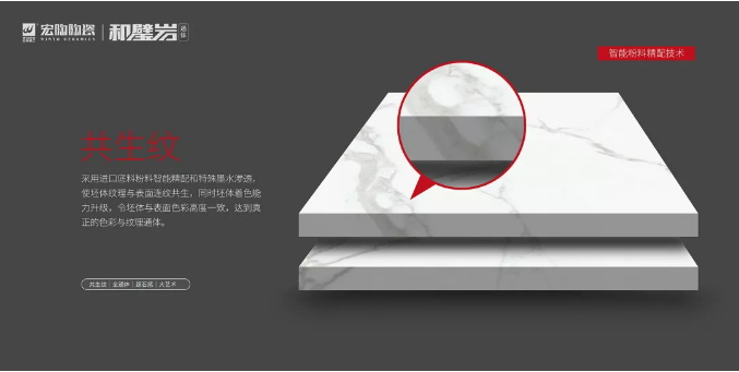 宏陶陶瓷【和璧岩·通体】实现了全瓷通体、纹理通体、色彩通体,并且全面攻克瓷砖坯体纹理与表面纹理不一致的行业技术难题,让瓷砖真正做到“表里如一”,由外而内无限接近天然石材,这一产品面世,成为行业技术发展的重要标志。