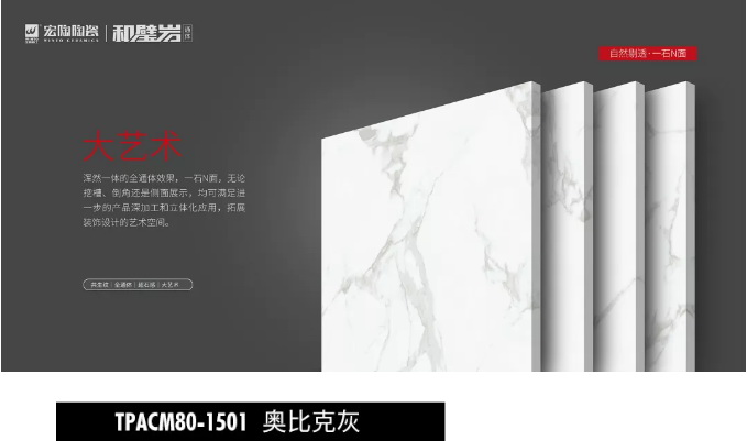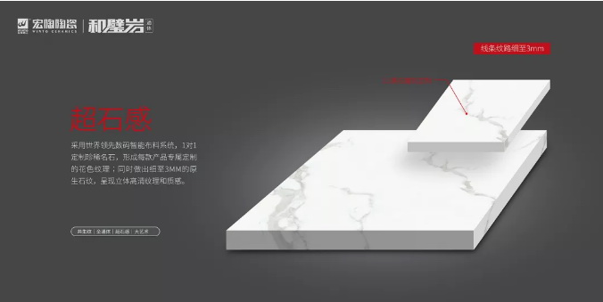 【和璧岩·通体】,引用前辈话叫“复活天然大理石”,而宏陶【和璧岩·通体】几乎可将复活二字的双引号去掉,通过精工工艺,实现表里连纹相接,犹如一 脉贯穿,如同珍稀石材,浑然天成,成功破解行业终极技术难题,具备了天然石材“表里如一”的通体性。