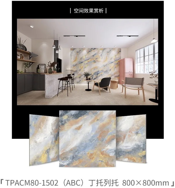 采用进口底料粉料智能精配和特殊墨水渗透,使坯体纹理与表面连纹共生,同时坯体着色能力升级,令坯体与表面色彩高度一致,达到真正的色彩与纹理通体。