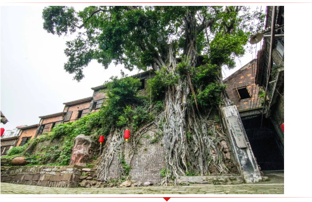 南风古灶窑尾的石壁上生长着一棵巨大的古榕树,估计至少有四百岁,在如此高温、贫瘠的土质上生长得这么枝繁叶茂,实为自然界的一大奇迹。